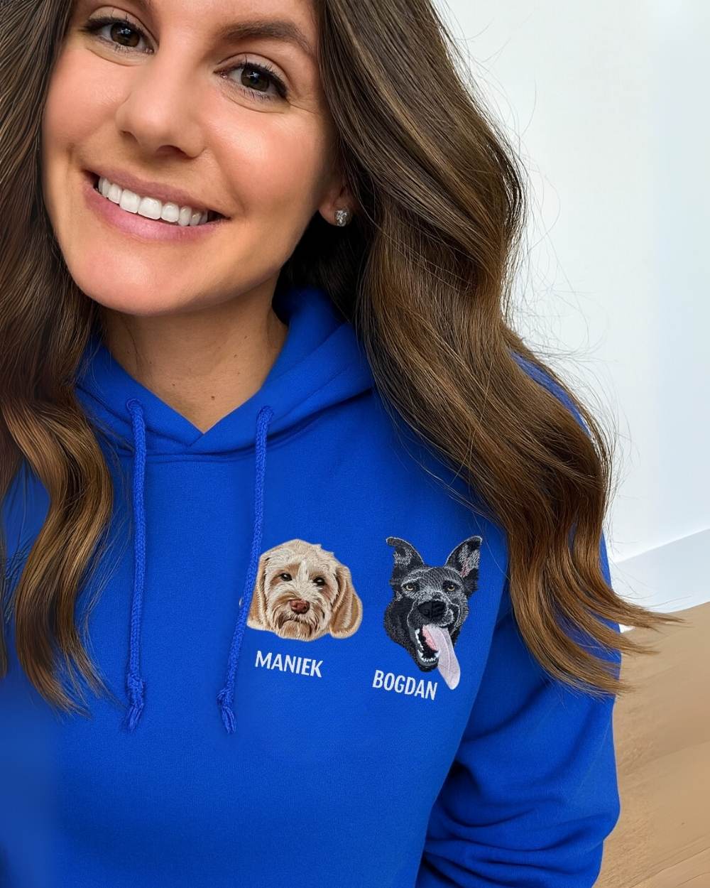 Portret Twojego zwierzaka zostanie wyhaftowany bezpośrednio na piersi naszej miękkiej, bawełnianej bluzy z kapturem, to wyjątkowy sposób, by mieć swojego przyjaciela zawsze przy sobie.